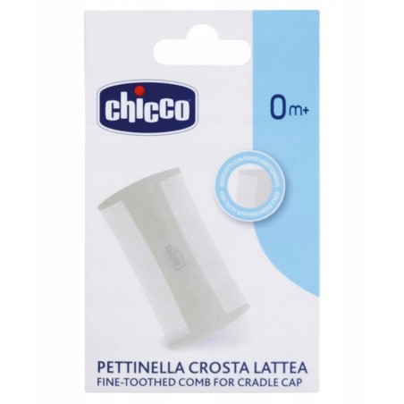 Grzebień Chicco został zaprojektowany specjalnie do usuwania łuszczących się płatków w okolicy ciemiączka w pierwszych miesiącach życia dziecka. Z gęstymi, zaokrąglonymi ząbkami, jest bardzo delikatny i skuteczny w pielęgnacji delikatnej skóry główki dziecka.