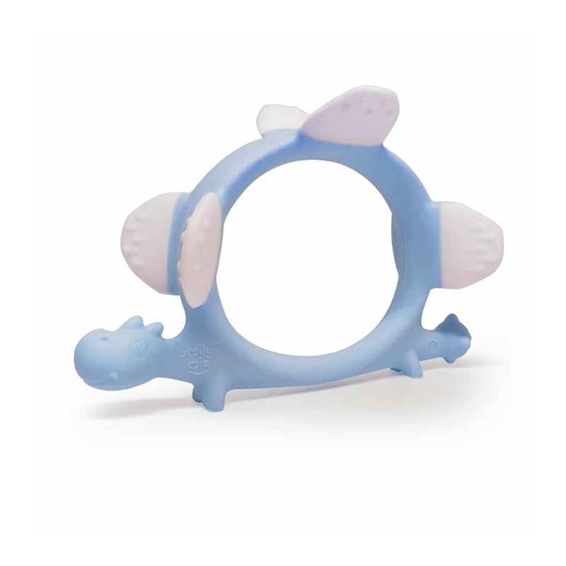 Uroczy dinozaur przyciąga uwagę dziecka już od pierwszego wejrzenia. Tekstury o wielu twardościach mogą masować i łagodzić swędzenie dziąseł oraz przynosić ulgę podczas ząbkowania. Dzięki temu, że jest okrągły, zapewnia wiele opcji chwytania, gryzienia, ciągnięcia i rozrywki w trudnym czasie ząbkowania. Idealnie pasuje do małych rączek i pozwala maluchowi ćwiczyć odruch chwytania, rozwiając przy tym zdolności motoryczne dziecka. Aby schłodzić gryzak, włóż go do lodówki, dzięki czemu będzie kojąco chłodny. Produkt jest bezpieczny i łatwy w gryzieniu nawet po ochłodzeniu.
