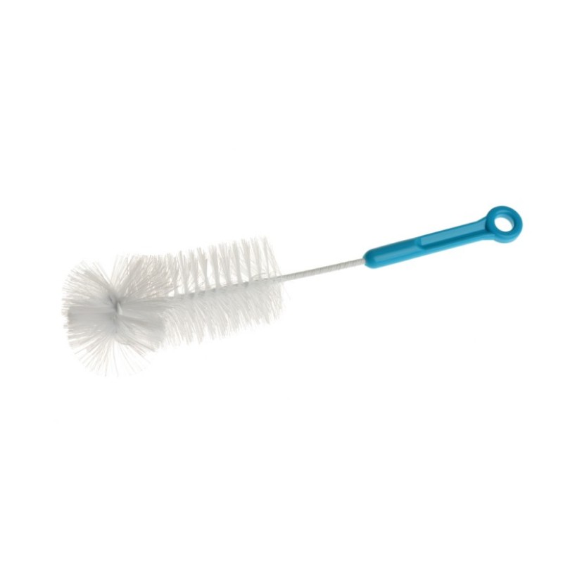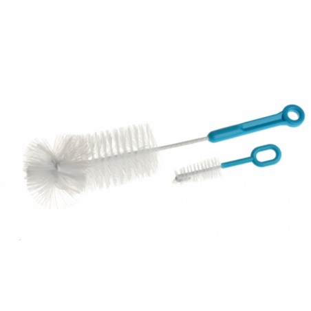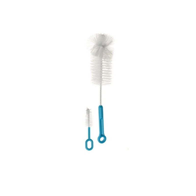 Zestaw specjalnie zaprojektowanych szczotek (duża i mała) do dokładnego mycia butelek i smoczków. Pozwalają na precyzyjne usuwanie zabrudzeń w trudno dostępnych miejscach. Wykonane z bezpiecznych materiałów. Kolor niebieski.