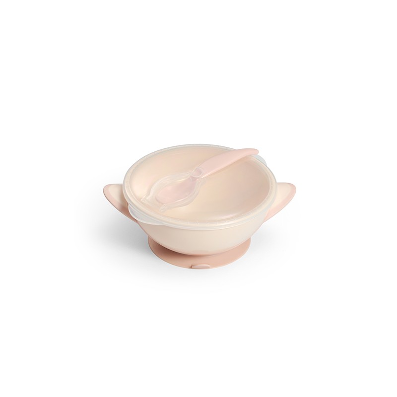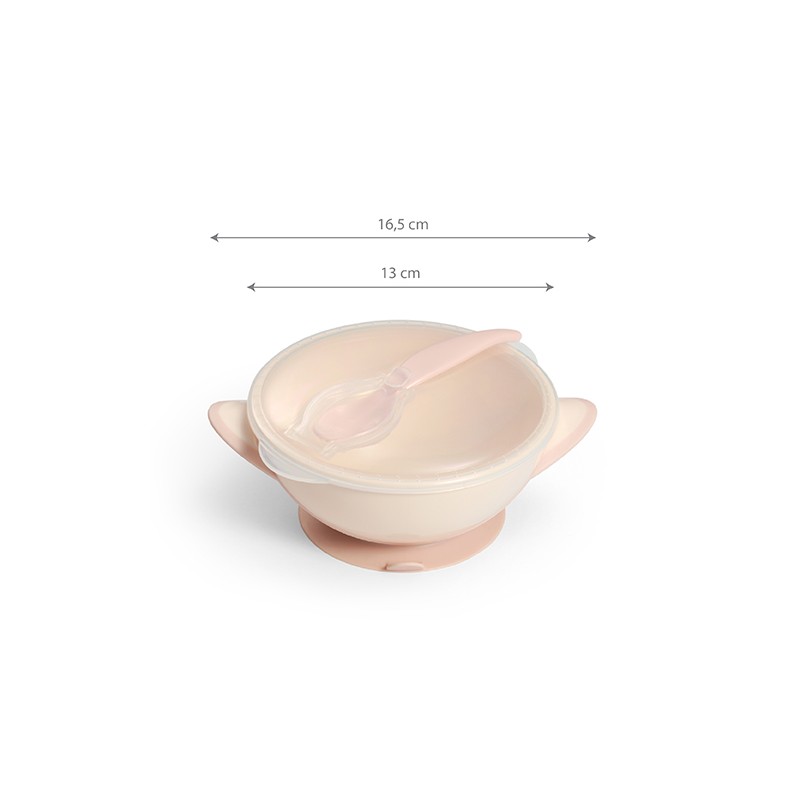BABYONO Miseczka dla dzieci i niemowląt z przyssawką i łyżeczką kremowo-różowa