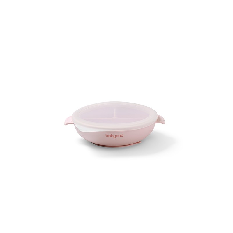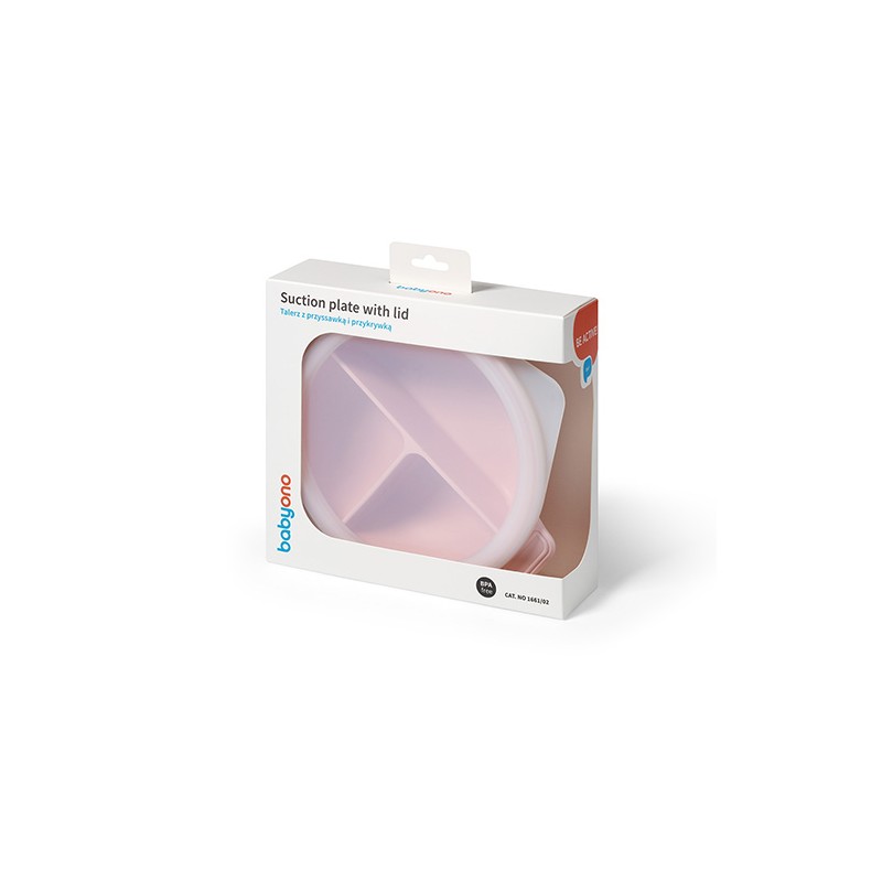 BABYONO Silikonowy talerz z przyssawką i przykrywką różowy