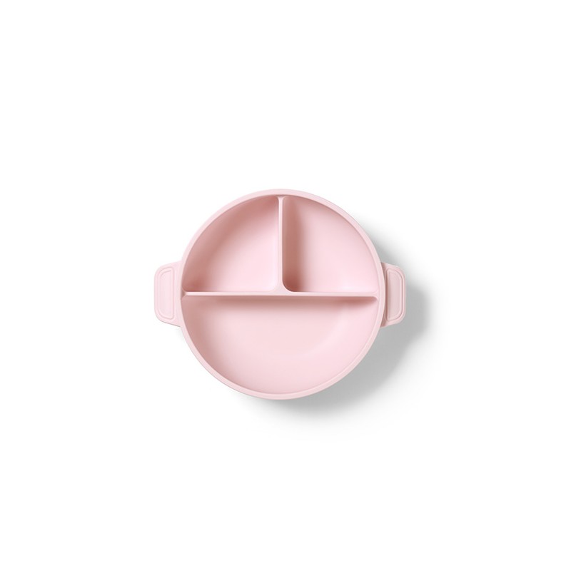 Mocna przyssawka trzyma silikonowy talerz na swoim miejscu, a zaokrąglony kształt ułatwia nabieranie pokarmu. Trzy przegródki pozwalają rozdzielić składniki, by dziecko mogło próbować każdego smakołyku osobno.