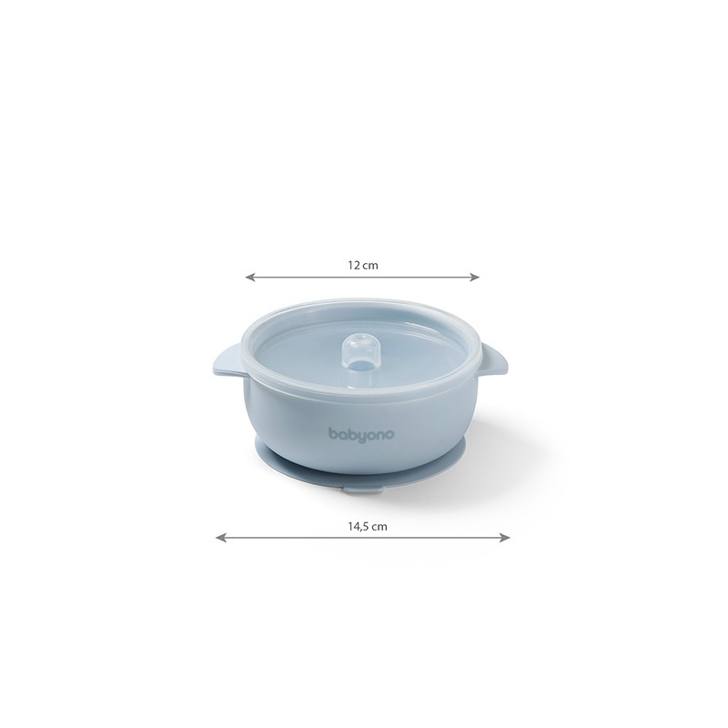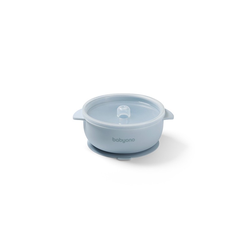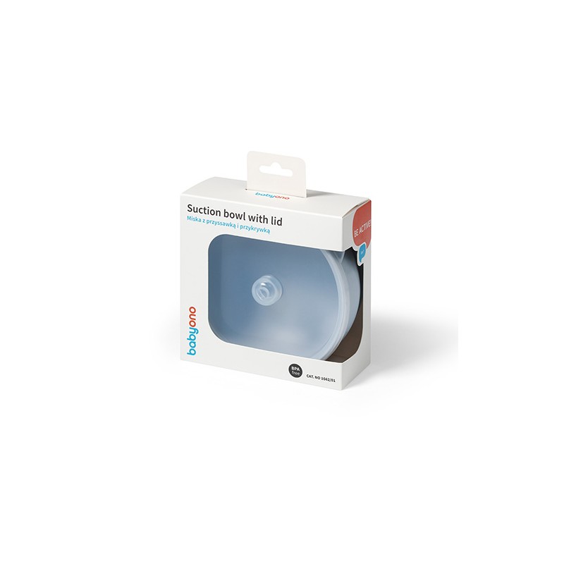 BABYONO Silikonowa miseczka z przyssawką i przykrywką niebieska