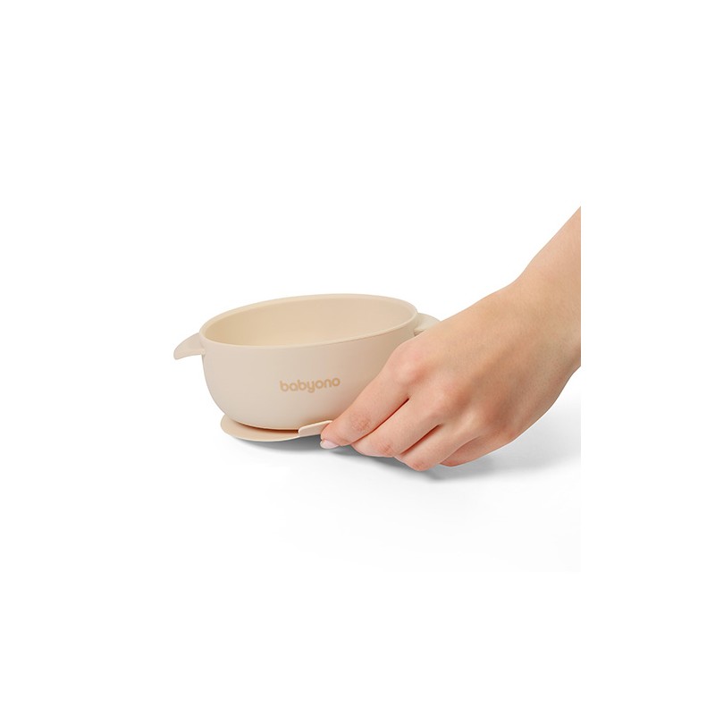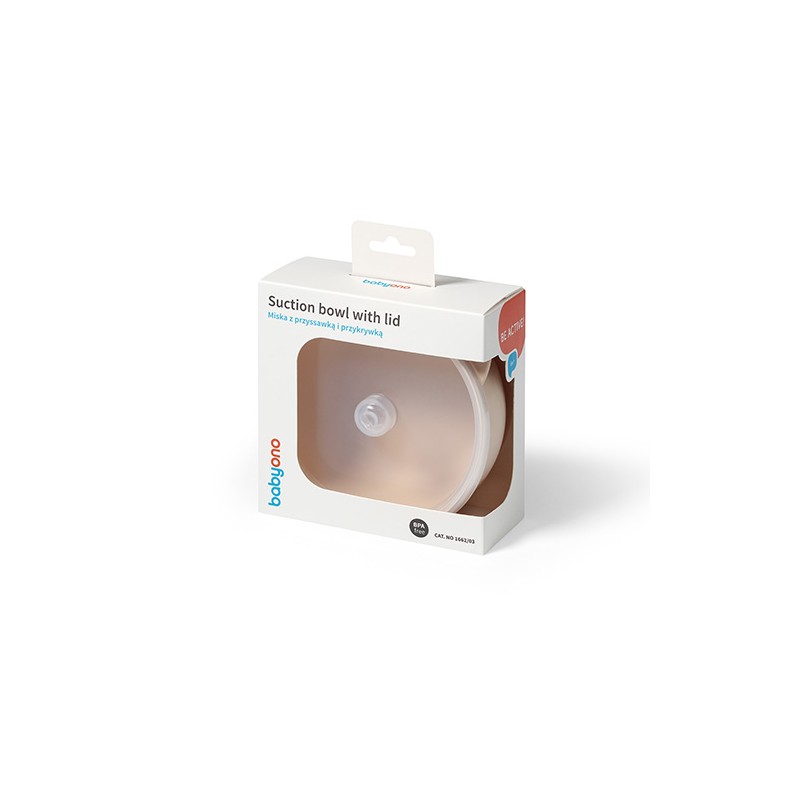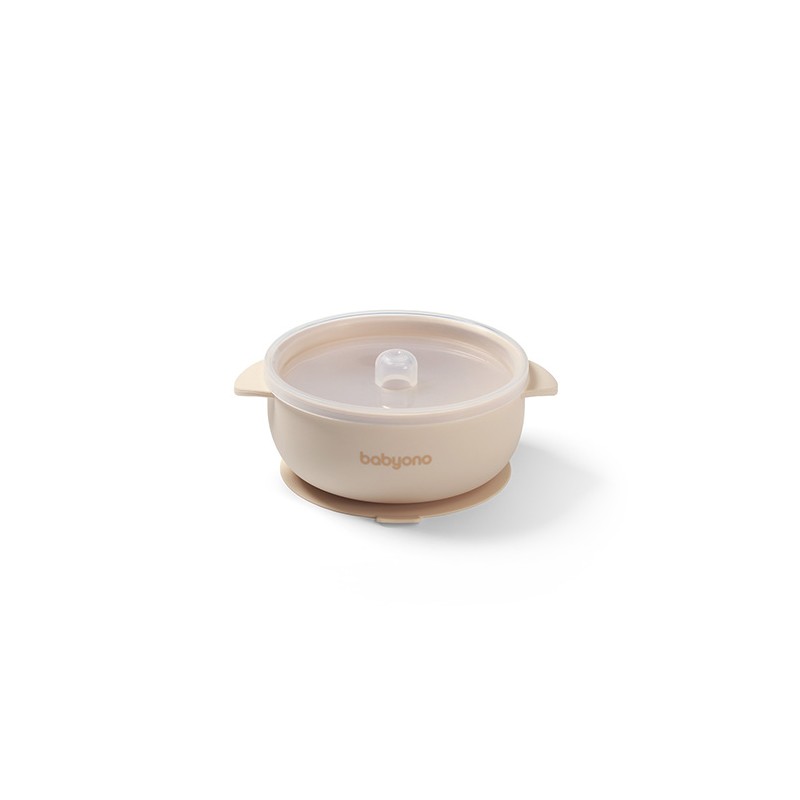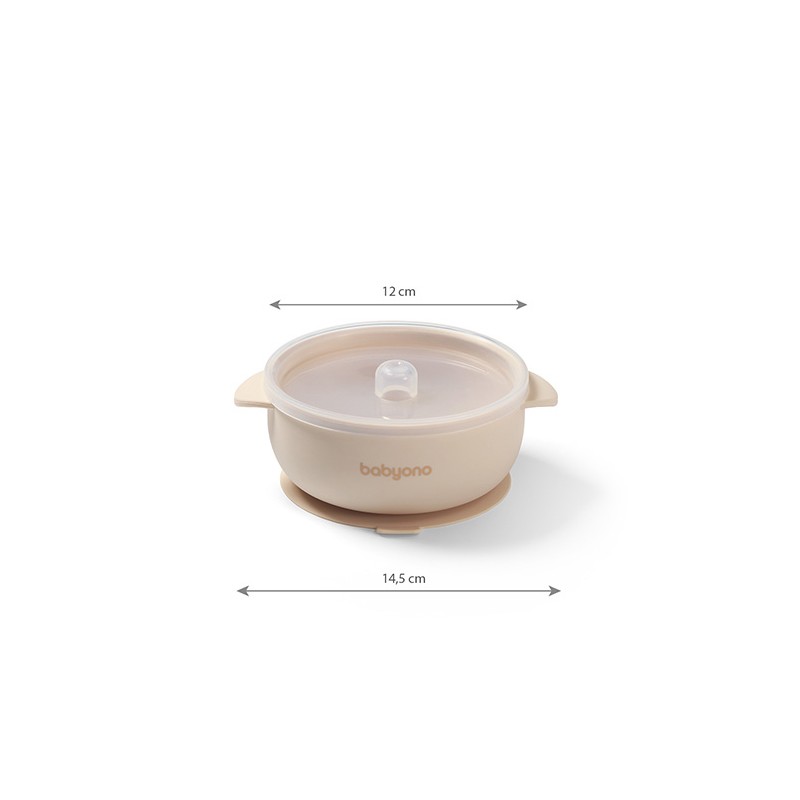 BABYONO Silikonowa miseczka z przyssawką i przykrywką beżowy
