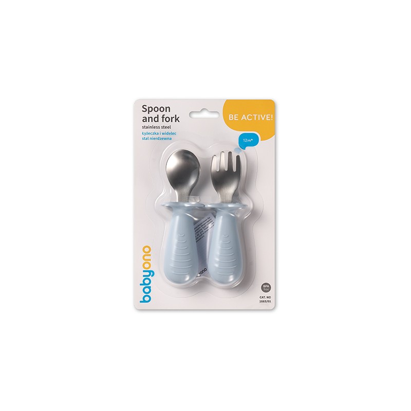 BABYONO Sztućce dla dzieci stal nierdzewna niebieskie