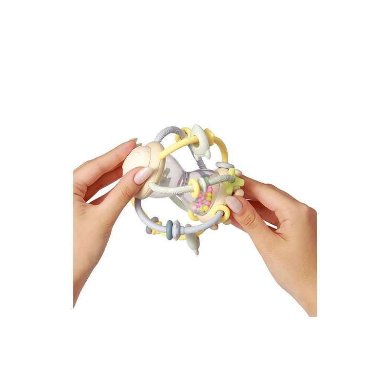 Elastyczne pałąki zruchomymi elementami są intrygujące dla małych rączek, a miękkie wypustki zapewniają kojący masaż dla obolałych dziąseł. Nasz gryzak z grzechotką to ulga dla malucha podczas ząbkowania.