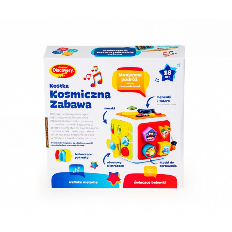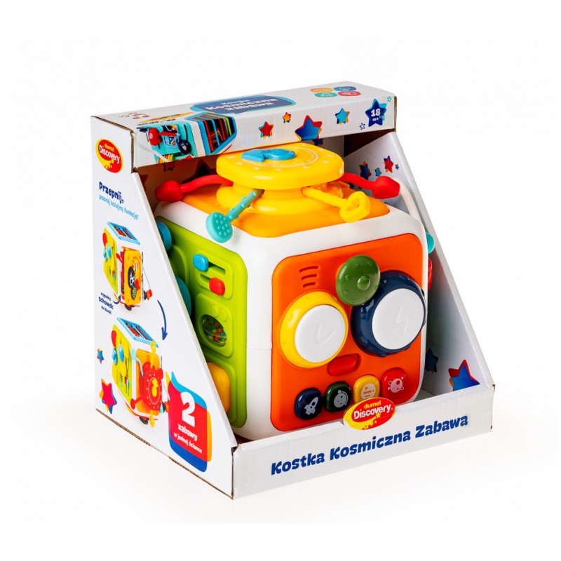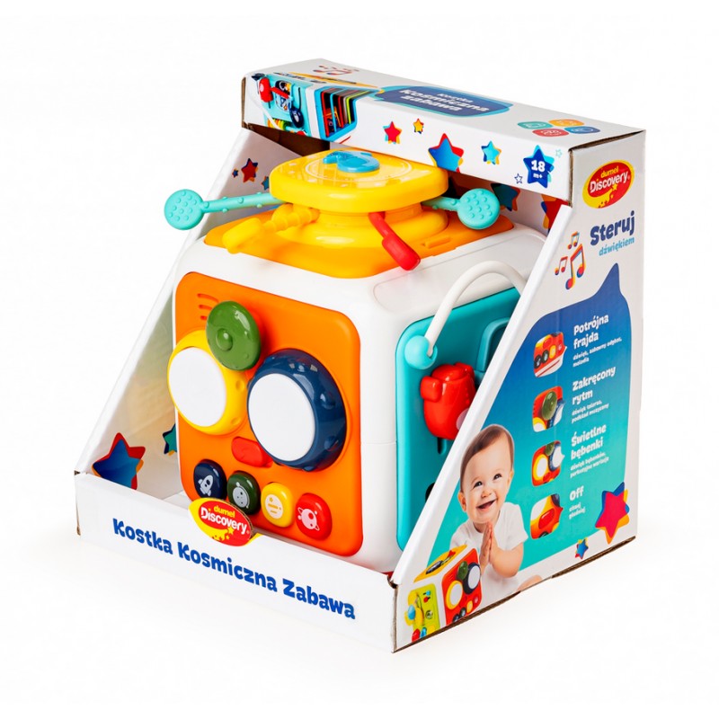 Baw się kosmicznie z kostką pełną dźwięków i zręcznościowych niespodzianek! Każda ze ścianek to inna, kolorowa przygoda.