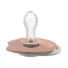 Komfort i ochrona delikatnej skóry – wyprofilowana tarczka smoczka minimalnie przylega do buzi, umożliwiając swobodny przepływ powietrza i ograniczając ryzyko podrażnień. Dodatkowe wycięcie pozwala dziecku swobodnie oddychać noskiem i przełykać ślinę – tak jak przy piersi.