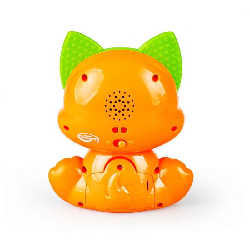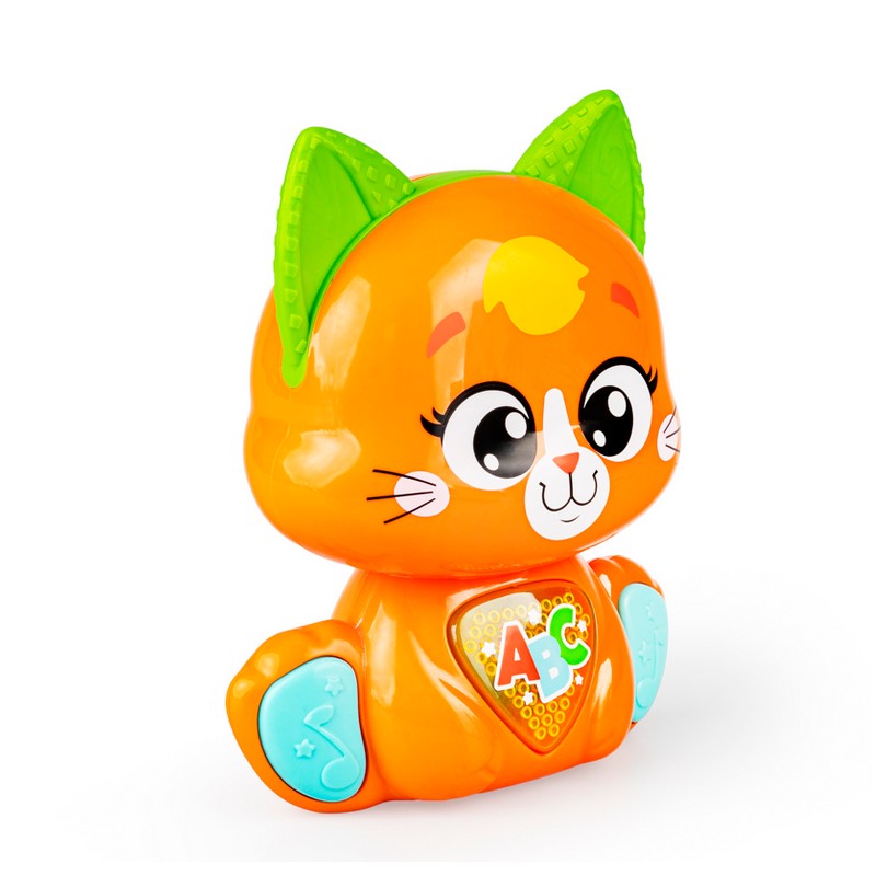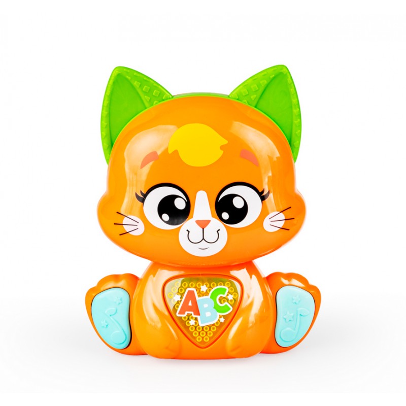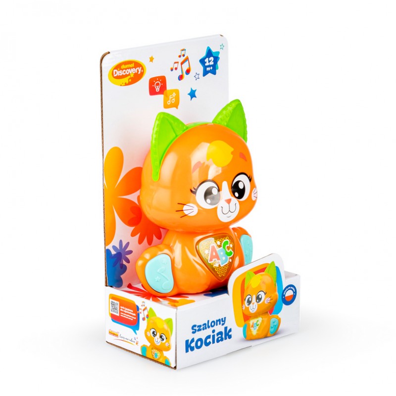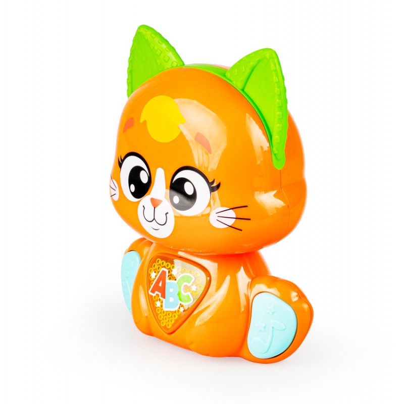 Jego rozśpiewany brzuszek odtwarza wesołe piosenki, a uruchamiający je przycisk, świeci podczas odtwarzania dźwięków. Kotek posiada czujnik dotyku na czółku, dzięki czemu, podczas głaskania kotka po głowie, maluch usłyszy wesołe frazy, wypowiadane przez zwierzaka. Kocie łapki także zadbają o rozrywkę malucha! Przycisk na pierwszej z nich uruchamia tryb wyzwań, w którym kotek aktywizuje najmłodszych trzema propozycjami zabaw. Druga łapka uruchamia melodie. Kociak wyposażony został w praktyczny przełącznik ON/OFF, umożliwiający wyłączenie zwierzaka po zakończonej zabawie.