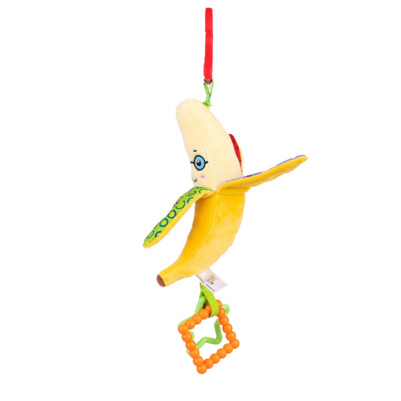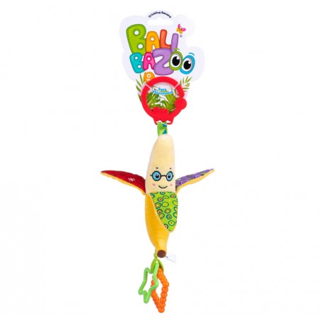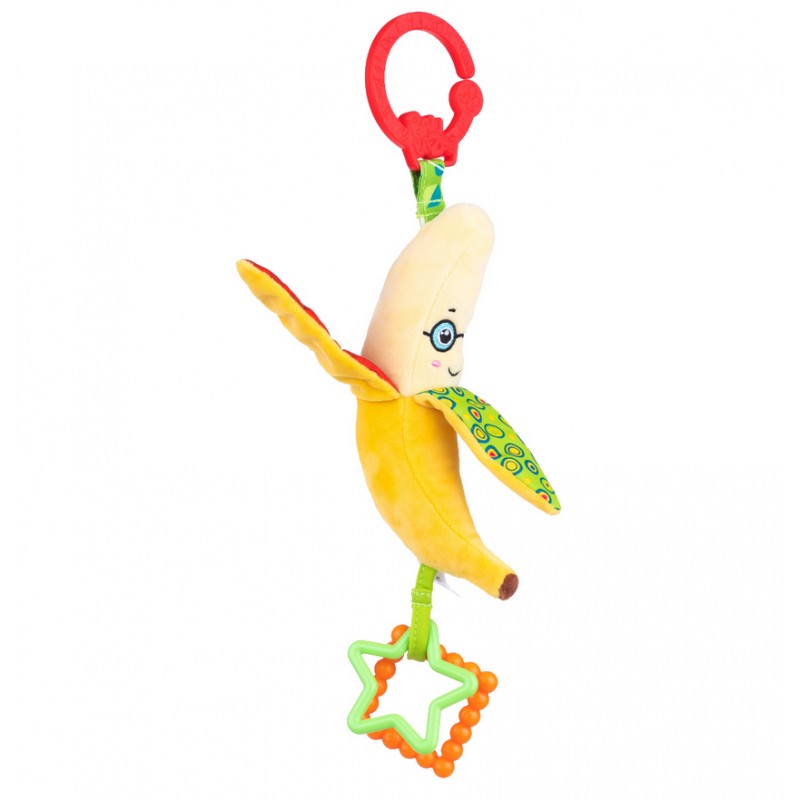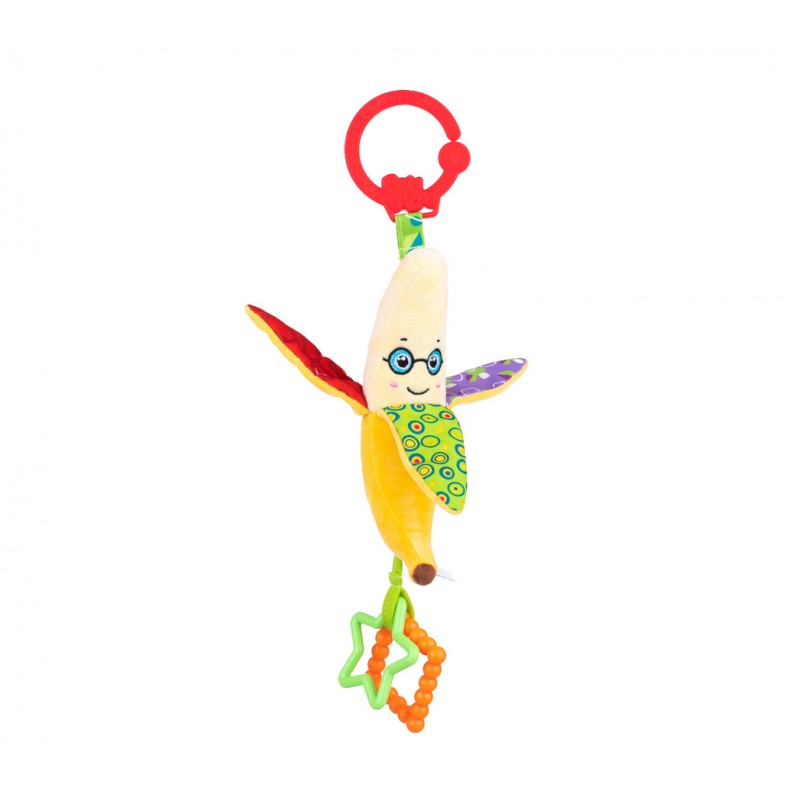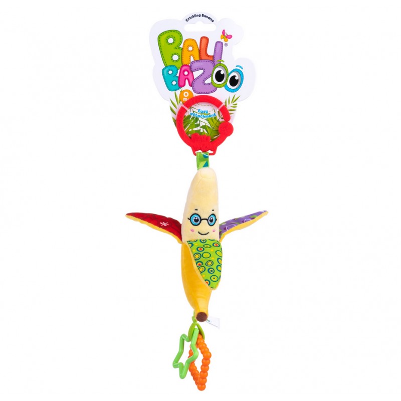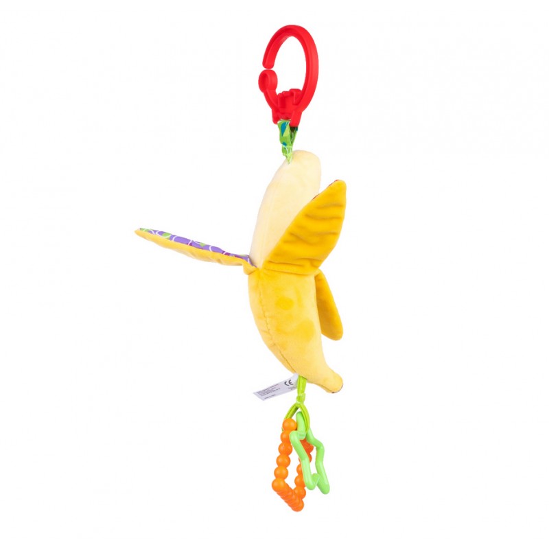 Sprytny Banan posiada szeleszczące elementy, a zdobią go dwa kolorowe gryzaczki, które przyniosą ulgę ząbkującym maluchom. Zabawka posiada praktyczny uchwyt, który umożliwia przymocowanie jej w wybranym miejscu.