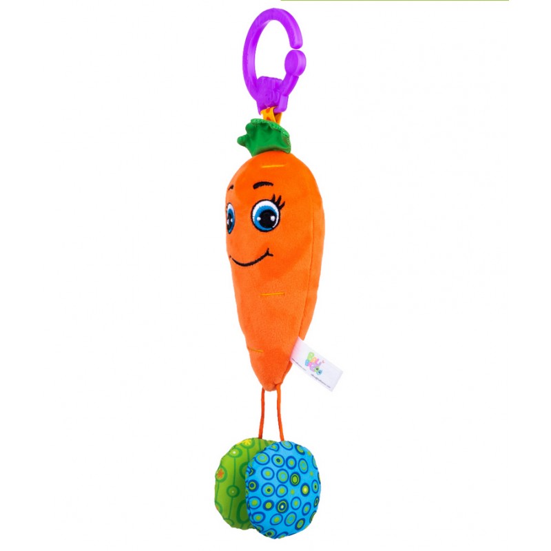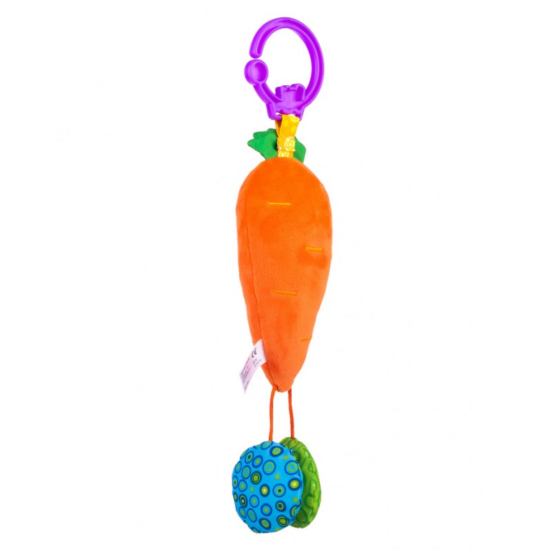 Zabawna Marcheweczka wesoło dzwoni zachęcając maluchy do zabawy. Zawieszka wykonana jest z materiałów o zróżnicowanej fakturze, przez co stymuluje zmysł dotyku dziecka. Zabawka posiada piszczałkę oraz szeleszczące elementy. Praktyczny uchwyt umożliwi przymocowanie jej w dowolnym miejscu.