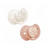 Silikonowy dynamiczny smoczek LOVI 0-6m 2szt. Blossom Ivory wyposażony został w dynamiczną gumkę wykonaną z niejednorodnej warstwy silikonu, która wydłuża się i kurczy zgodnie z rytmem ssania dziecka. Kształt gumki inspirowany jest kształtem brodawki sutkowej wypełnionej mlekiem, więc maluszek czuje się podobnie jak przy piersi mamy. Gumka smoczka ma tak cienką szyjkę, aby umożliwić dziecku swobodne domykanie ust i odpowiednią pracę dziąseł podczas ssania oraz zapewnić wystarczającą ilość miejsca w buzi na pracę języka. Zmniejsza to ryzyko powstania wad zgryzu i wymowy.