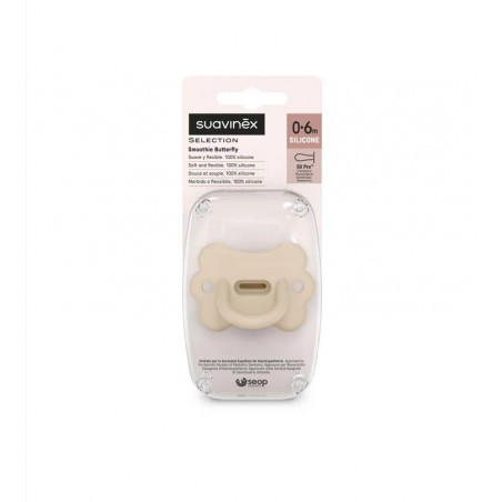SUAVINEX Smoczek 100 % silikonowy fizjologiczny SX Pro Motylek 0-6m beżowy Colour Essence