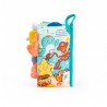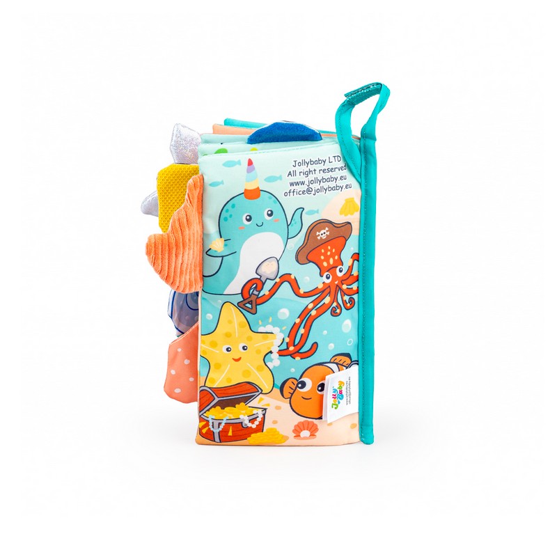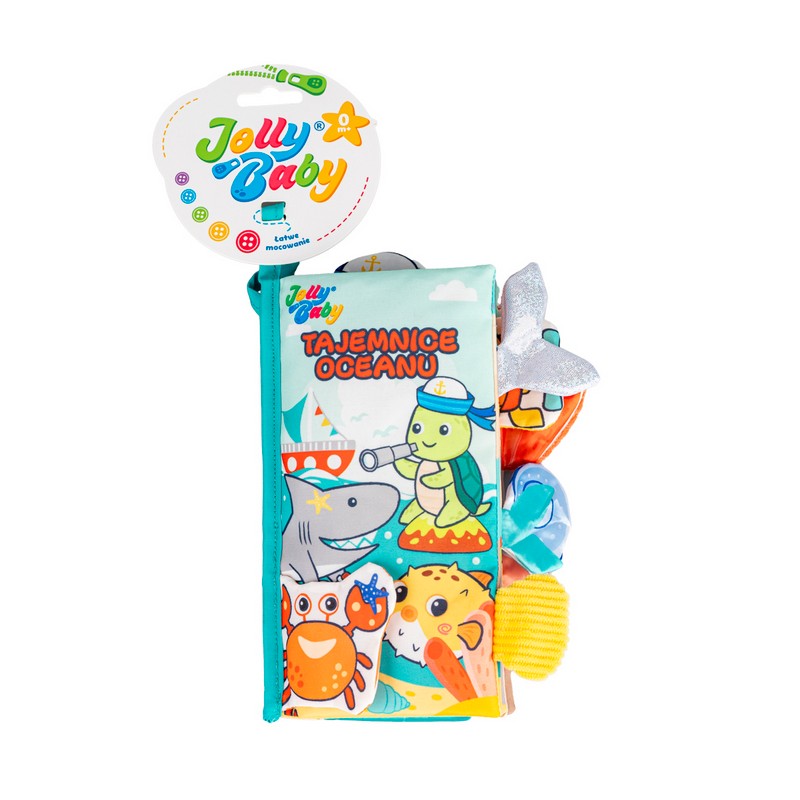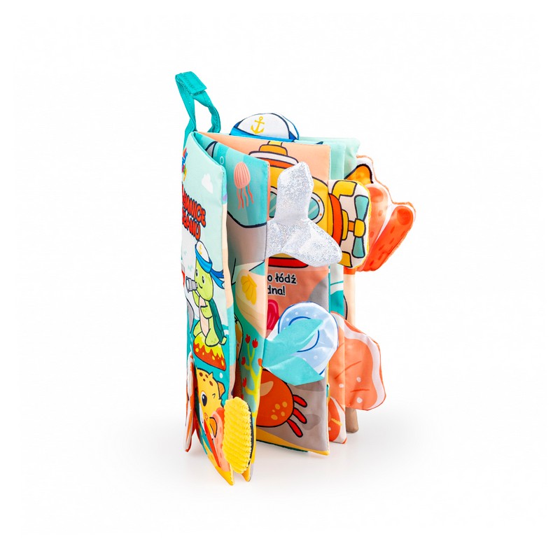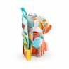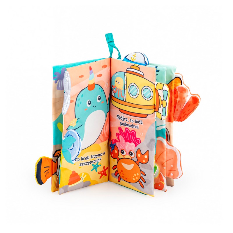 W materiałowej książeczce znajdziemy szeleszczącą okładkę oraz barwne strony, ozdobione obrazkami ze zwierzakami, krótkimi zdaniami w języku polskim oraz wystającymi, materiałowymi elementami o zróżnicowanych fakturach. Książeczka wyposażona jest w praktyczną zawieszkę, która pozwala przymocować ją w wybranym miejscu, aby mogła towarzyszyć maluchowi w domu i na spacerze.