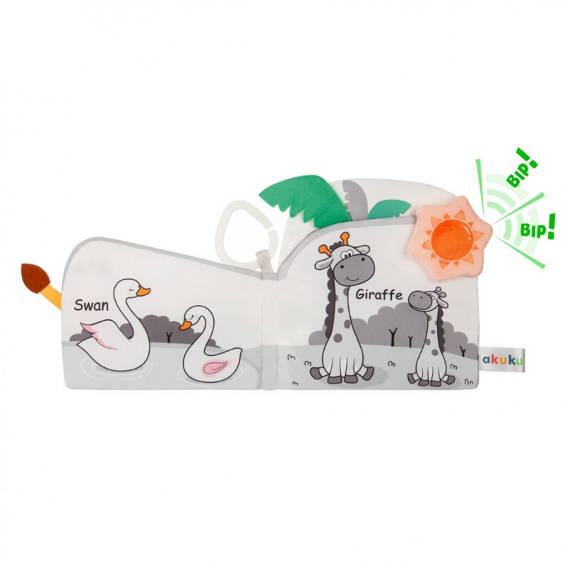 – przenośna i łatwa do zawieszenia – dzięki praktycznemu uchwytowi w kształcie serca, książeczkę można łatwo zawiesić w wózku, łóżeczku lub na pałąku do zabawy, by maluszek miał ją zawsze przy sobie,