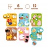 - w pudełku znajdziecie 6 układanek (po 4 elementy) i 12 żetonów