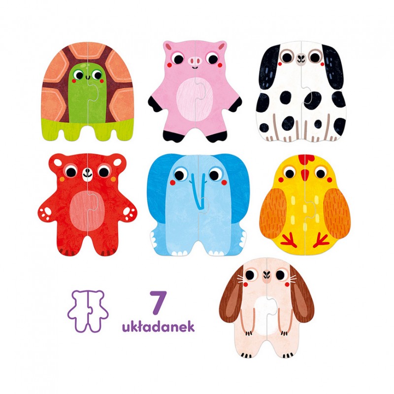 - w pudełku znajdziecie 7 układanek (14 elementów)