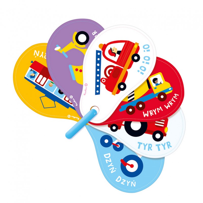 Pierwsza książeczka obrazkowa na kółeczku zachęca do wspólnego poznawania świata i różnorodnych rozwijających zabaw. Kolorowe ilustracje z pojazdami o liczbie szczegółów dopasowanej do wieku, zachęcają dzieci do pokazywania paluszkiem, poznawania nowych słów i podejmowania prób mówienia.