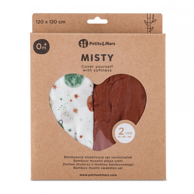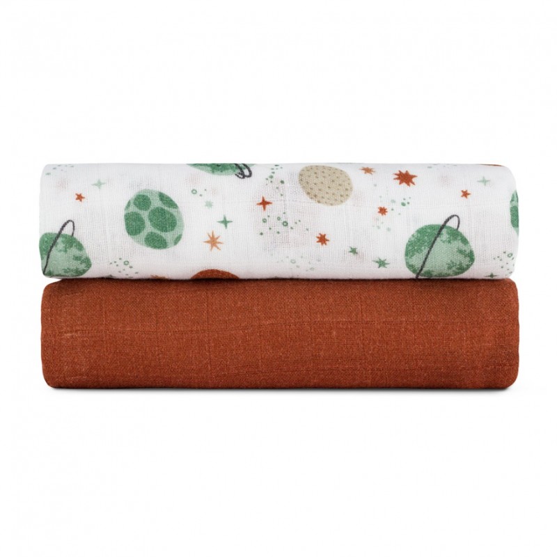 PETITE&MARS Zestaw otulaczy z muślinu bambusowego 2szt.CELESTISL PLANETS