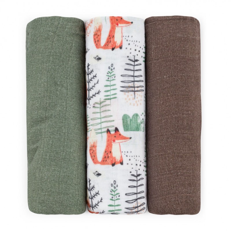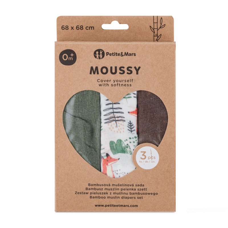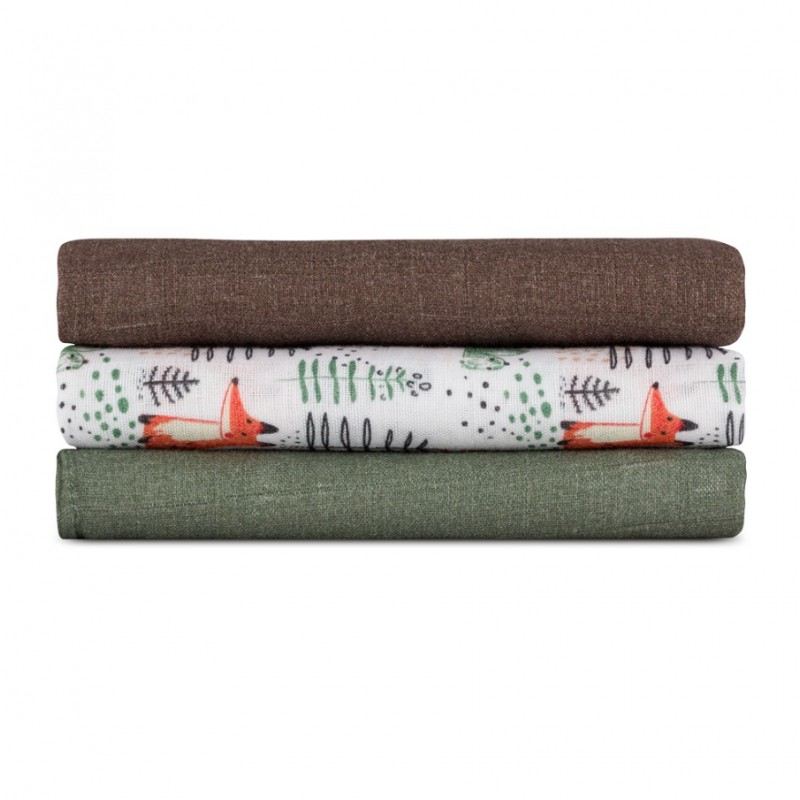 PETITE&MARS Zestaw pieluszek z muślinu bambusowego 3szt Moussy Forest Fox