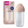 Innowacyjna butelka LOVI Mammafeel jest tak bliska piersi mamy jak to możliwe, bo jak najbardziej przypomina kolorem, kształtem, fakturą i dynamiką pierś. Unikalna konstrukcja smoczka inspirowana kobiecą piersią wspomaga karmienie naturalne oraz redukuje ryzyko wystąpienia kolki.