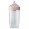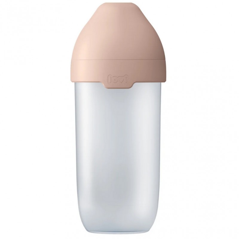 Butelka LOVI Mammafeel 330 ml pozwala zaspokoić potrzeby dziecka przyzwyczajonego do ssania piersi takie jak: wrażenie dotykania piersi, odczucie aksamitnej powierzchni przypominającej skórę mamy, znajomy kształt i kolor, a także miękkość i sprężystość piersi, bo pierścień przy smoczku przypomina brodawkę sutkową.