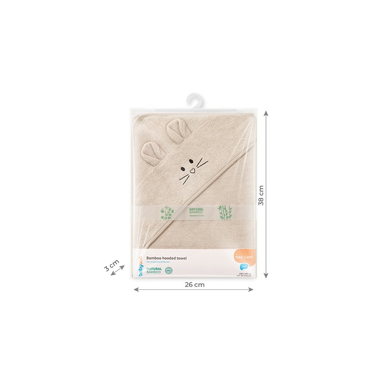BABYONO Okrycie kąpielowe bambusowe z kapturkiem 100x100cm jasny beż