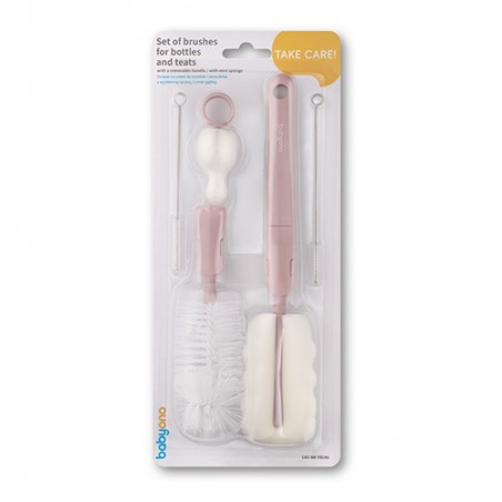 BABYONO Szczotki do butelek i smoczków z wymienną rączką różowe