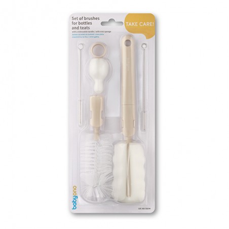 BABYONO Szczotki do butelek i smoczków z wymienną rączką beżowe
