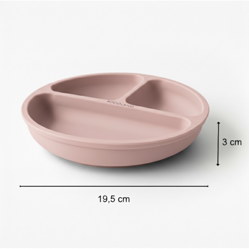BOCIOLAND Talerzyk silikonowy z podziałką i przyssawkami różowy