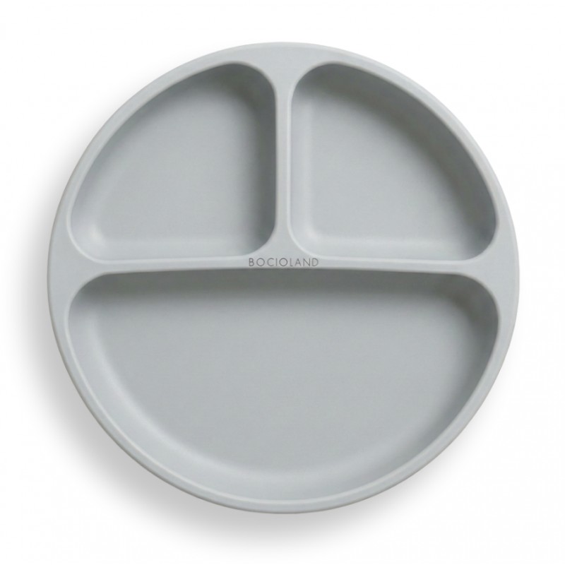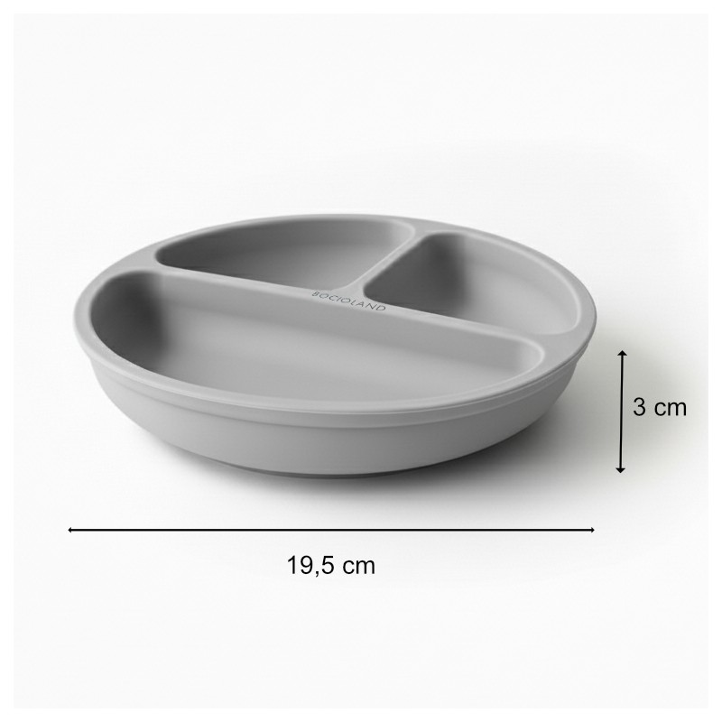 BOCIOLAND Talerzyk silikonowy z podziałką i przyssawkami jasny szary