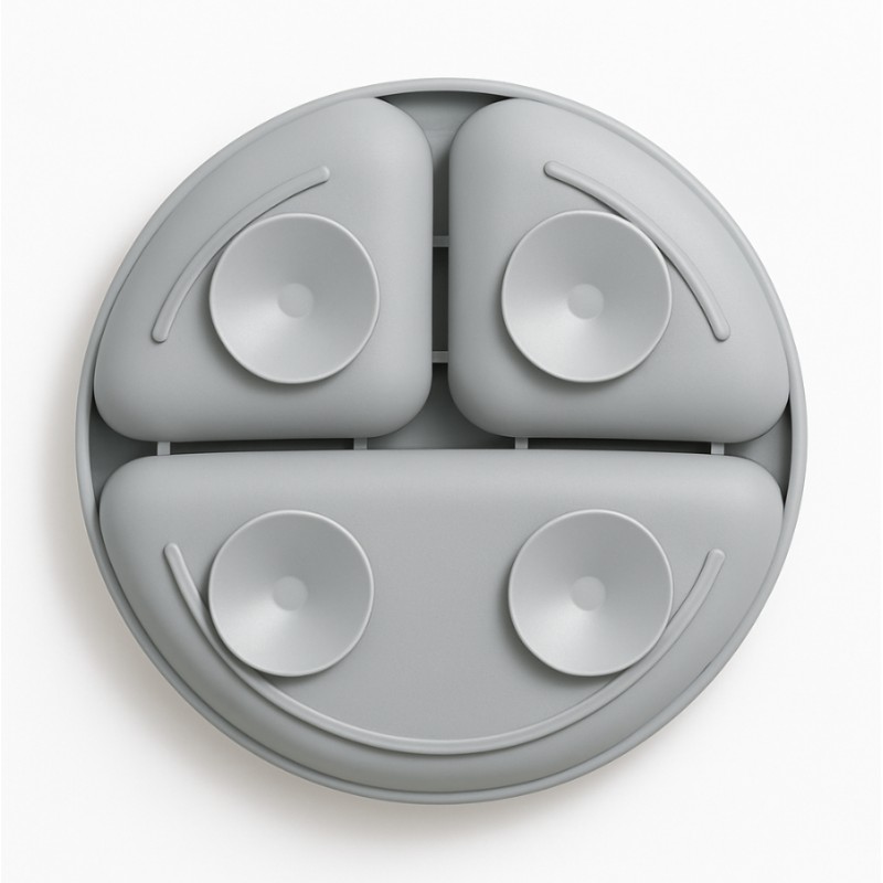 Silikonowy talerzyk z przyssawkami i przegródkami – stabilny i bezpieczny