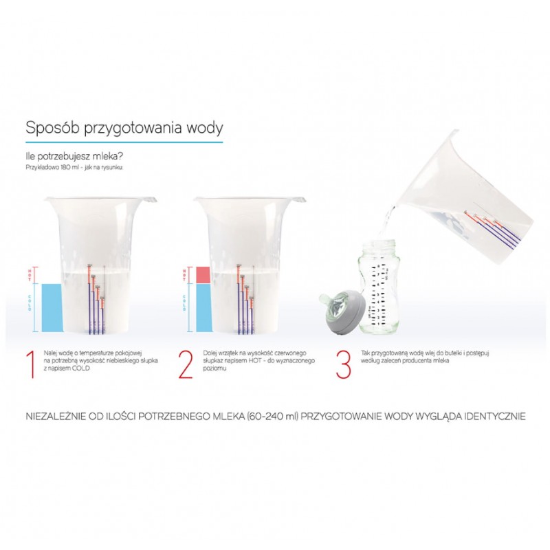 Koniec z dozowaniem wody, korzystaniem z termometrów czy podgrzewaczy, by przyrządzić dziecku mleko w proszku w idealnej temperaturze do spożycia.