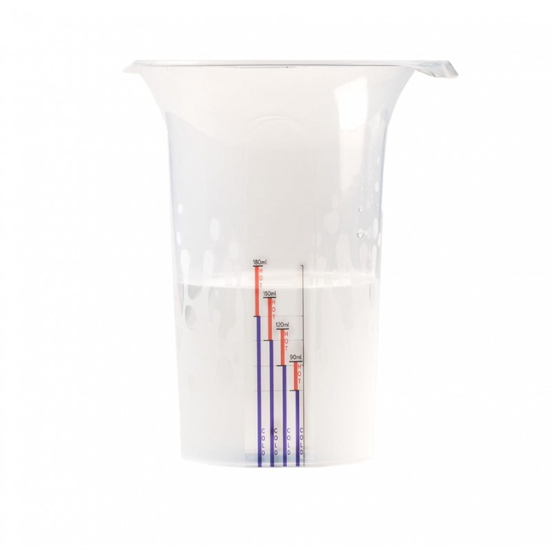 Miarka Ci to umożliwi bez wysiłku! Zasada działania jest bardzo prosta, wlewasz zimną oraz gorącą wodę do kubeczka według miarki i zawsze osiągasz temperaturę 40 stopni, idealną do mleka w proszku i nie tylko.