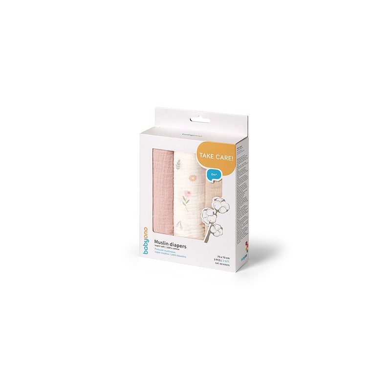 BABYONO Pieluszki muślinowe marszczone różowe 3szt.