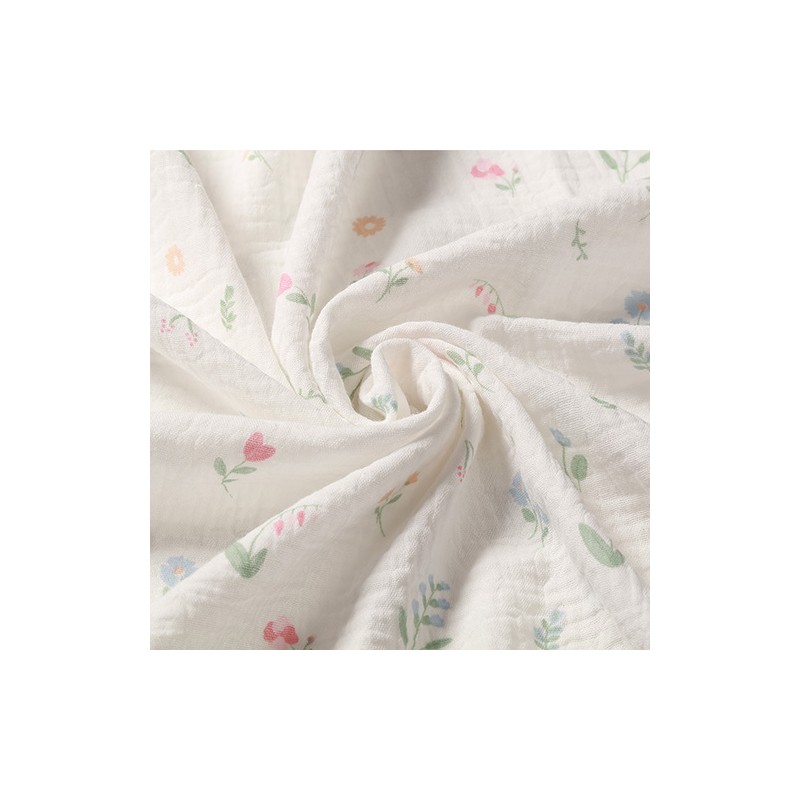 Nasze pieluchy muślinowe uszyliśmy z najwyższej jakości bawełny. Marszczona tkanina jest wyjątkowo miękka i przyjemna w dotyku. Nie ociera, nie odparza i nie uczula.