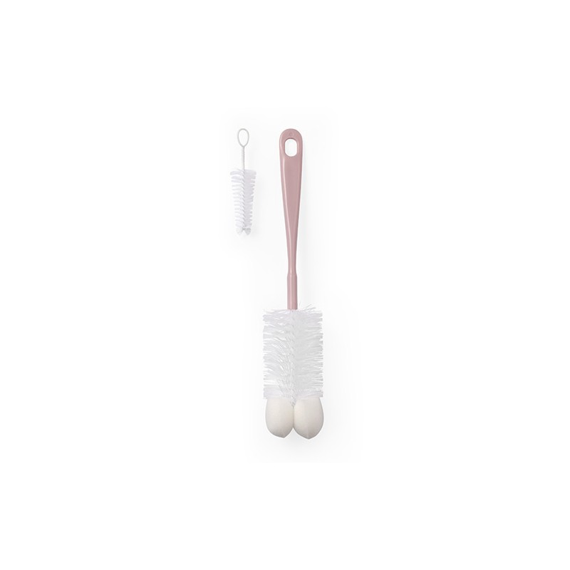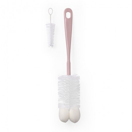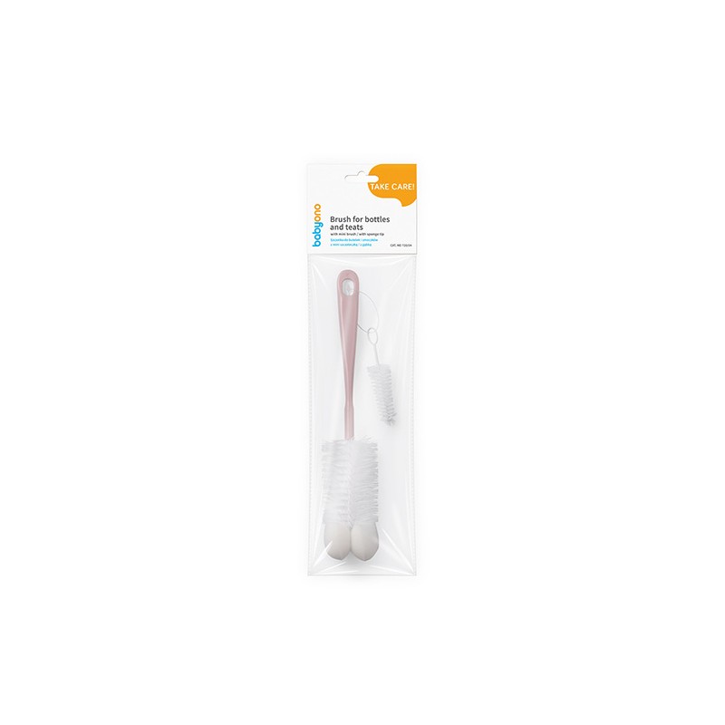 BABYONO Szczotka do butelek i smoczków z mini szczoteczką różowa