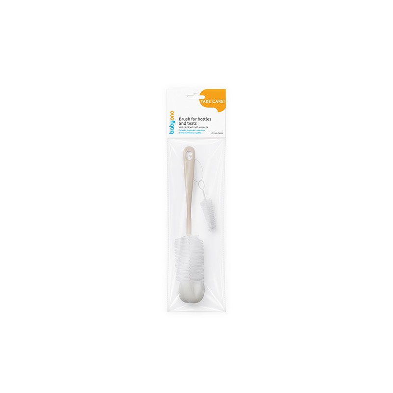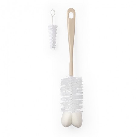 BABYONO Szczotka do butelek i smoczków z mini szczoteczką beżowa