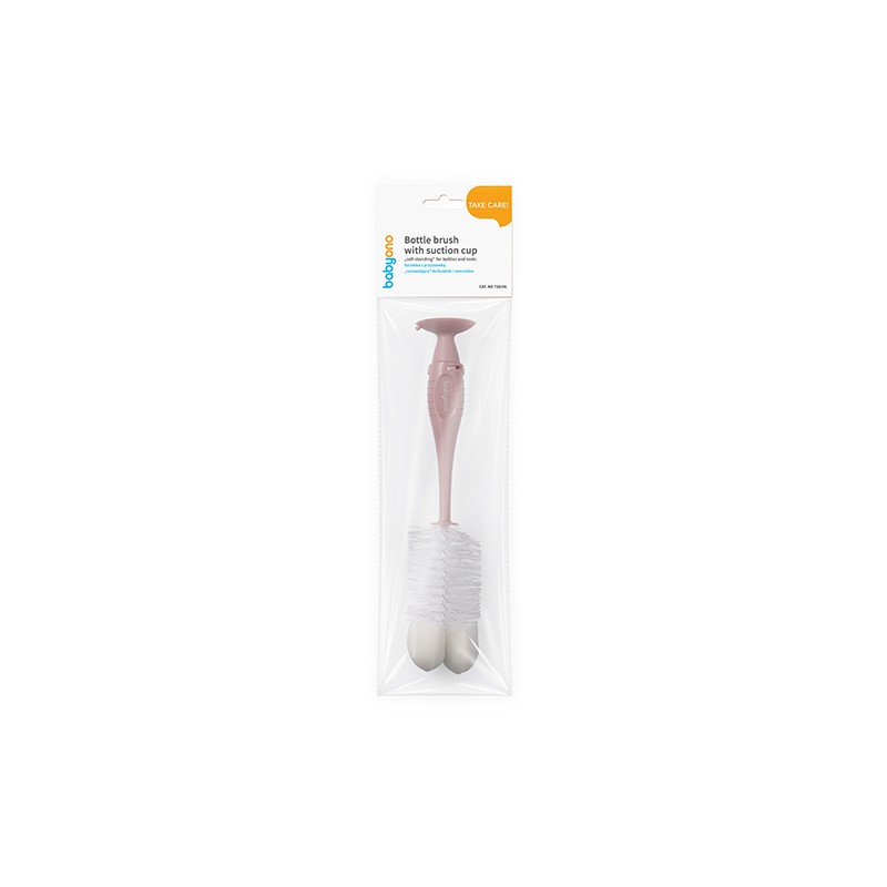 BABYONO Szczotka do butelek i smoczków samostojąca z przyssawką różowa