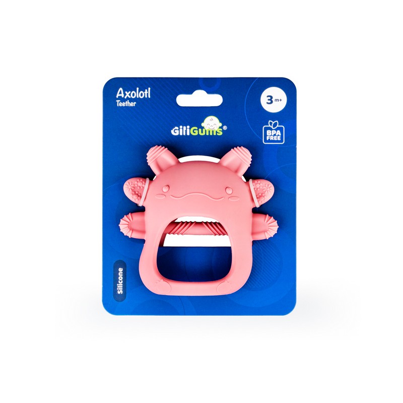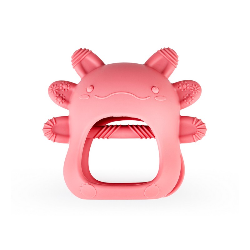 Silikonowy zwierzaczek w wesołym, różowym kolorze pomoże maluchom przejść przez trudny okres ząbkowania.