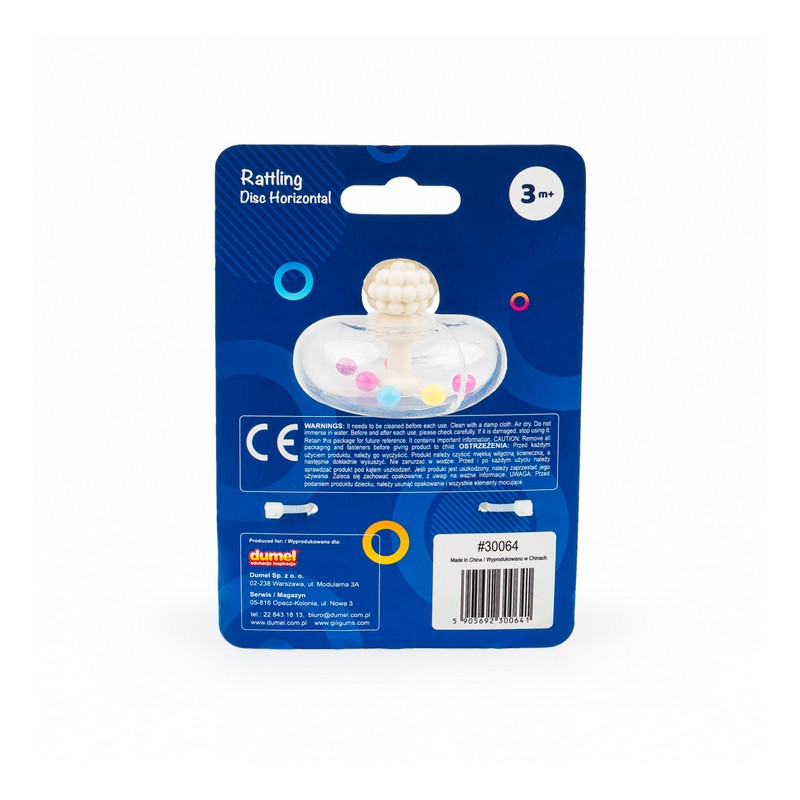 Wszystko za sprawą kuleczki z wypustkami, znajdującej się na górze grzechotki. Zabawka wyposażona jest w miękki, silikonowy uchwyt, dostosowany do małych rączek, dzięki czemu zabawa z grzechotką będzie nie tylko wesoła, ale także komfortowa.