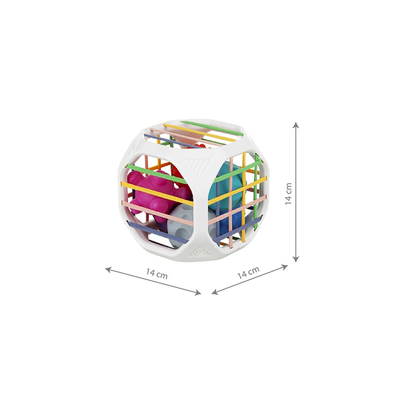 Zabawka posiada również innowacyjną kostkę zbudowaną z kolorowych, elastycznych linek. Można je przekształcać i dostosowywać, co dodatkowo rozwija zdolności manualne.