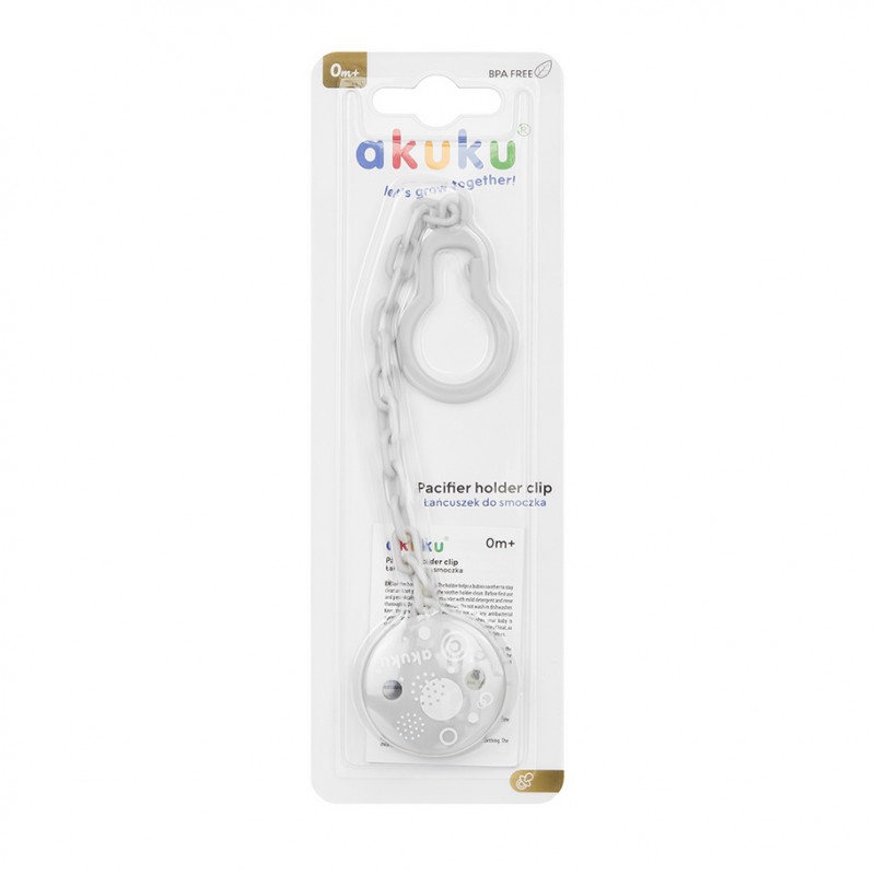 AKUKU Łańcuszek z klipsem do smoczków uspokajających szary