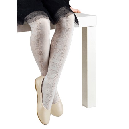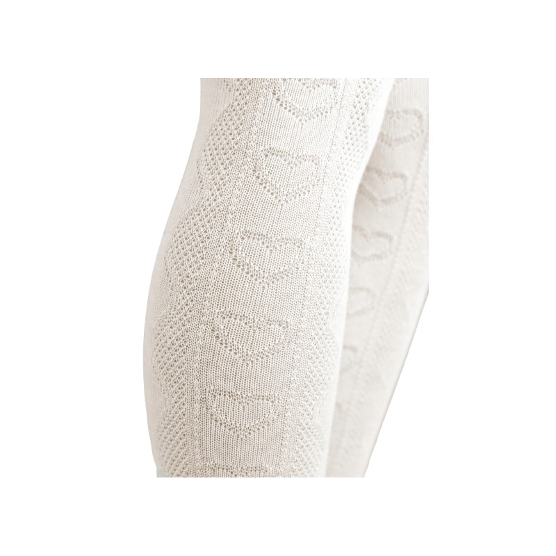 Rajstopy bawełniane ecru z żakardowym wzorem serca 68-74 cm