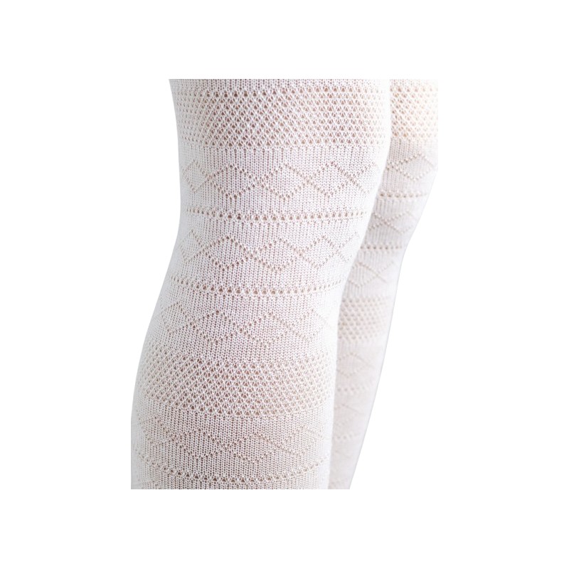 Idealny wybór na specjalne okazje i codzienne stylizacje. Wykonane z wysokiej jakości bawełny (78%), miękkie i przyjazne dla delikatnej skóry dziecka. Ażurowy wzór nadaje im elegancji.