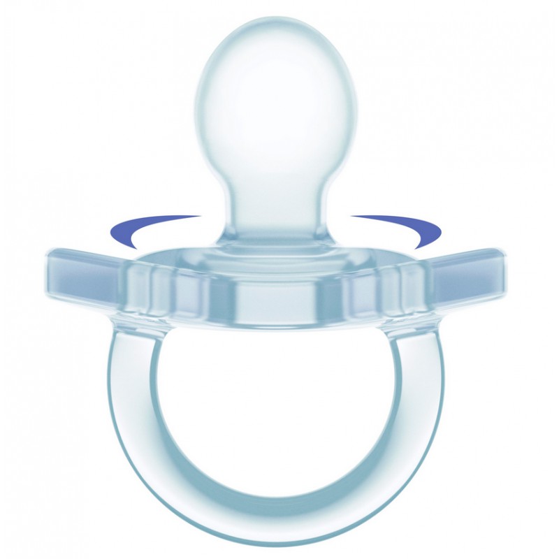 - delikatna tarczka smoczka przypomina pierś mamy, zwiększając poczucie komfortu oraz pozwalając na wygodne ułożenie ust w czasie ssania