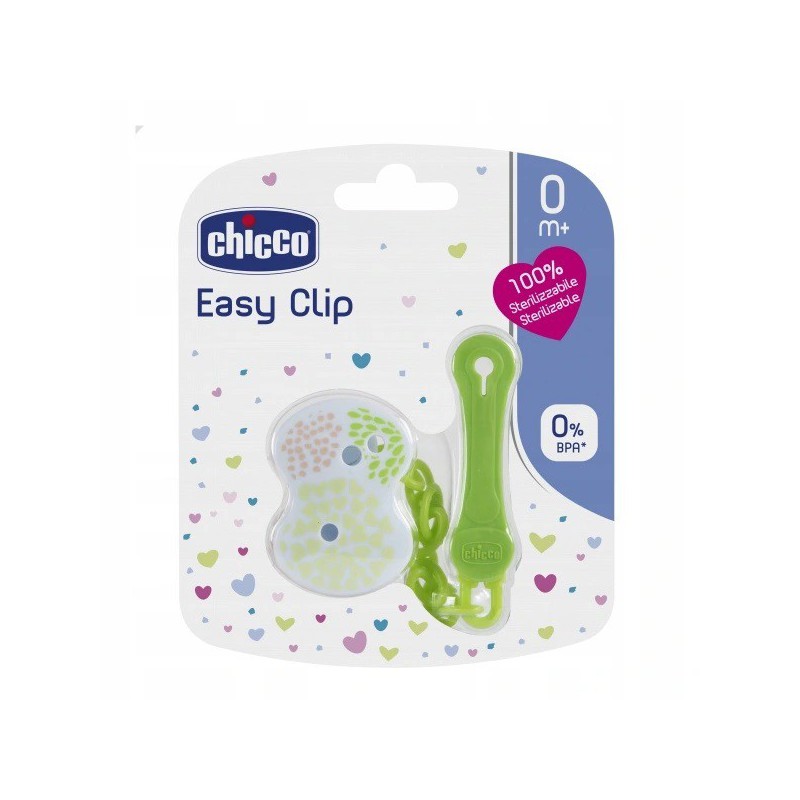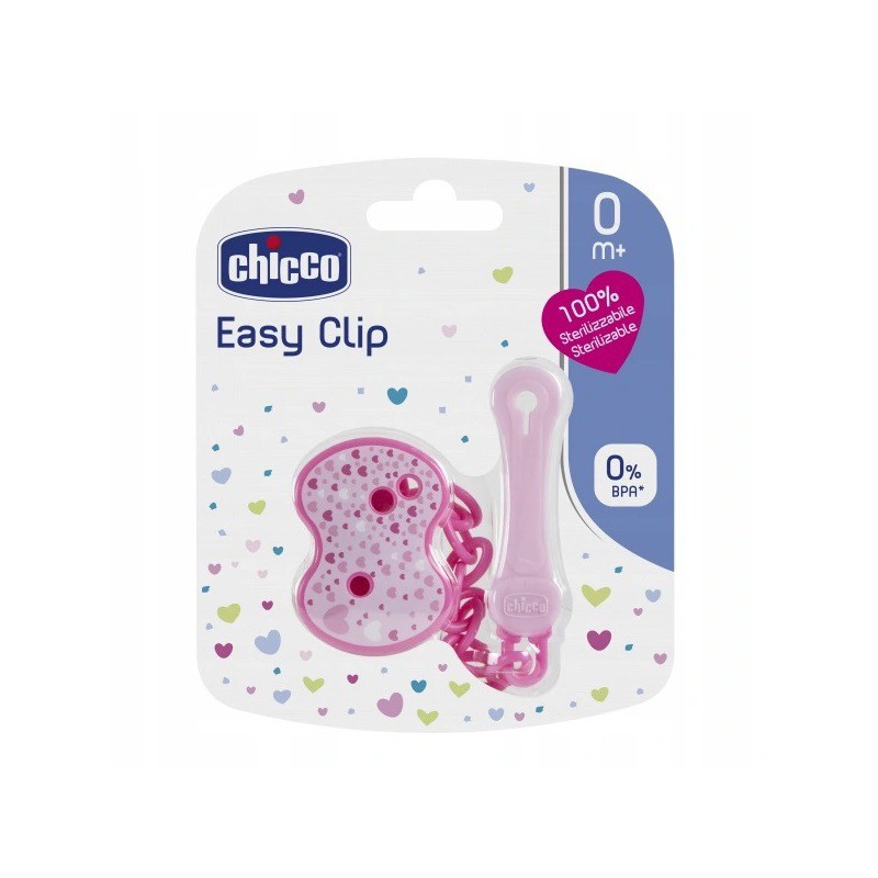 Łańcuszek do smoczka z klipsem Chicco jest strażnikiem smoczka. łatwy do zapięcia na odzieży nie niszczy jej. Chroni smoczek przed zaginięciem, upadkiem na podłogę i zabrudzeniem. Dostępny w kilku kolorach .wybierz jeden z nich i dopasuj do smoczka uspokajającego Chicco