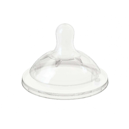 Bardzo miękki silikon i wgłębienia na podstawie smoczka gwarantują naturalne odczucia, jak przy piersi mamy.