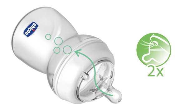 Podwójny system antykolkowy zapobiega połykaniu powietrza, zmniejszając ryzyko wystąpienia kolki.