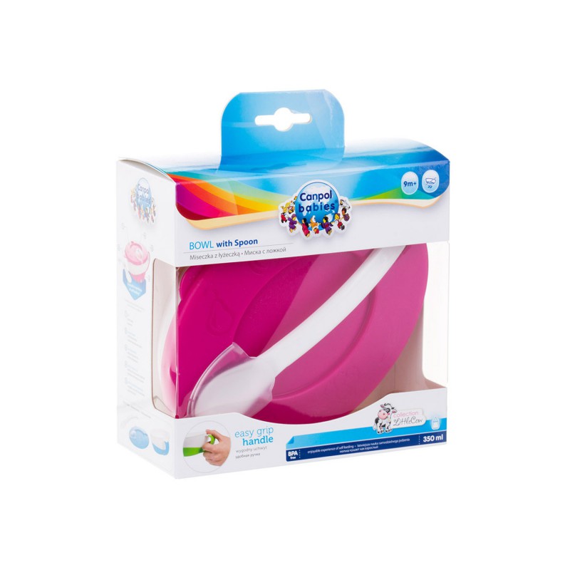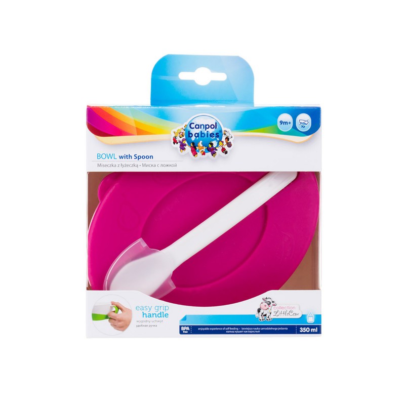 CANPOL Miseczka z Łyżeczką i Pokrywką 350ml Różowa 31/406